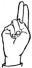 На ћирилици написано РАДОВАН БИЛИНАЦ састоји се из 14 слова [?]. Исписано ћириличном једноручном азбуком за глувонеме: